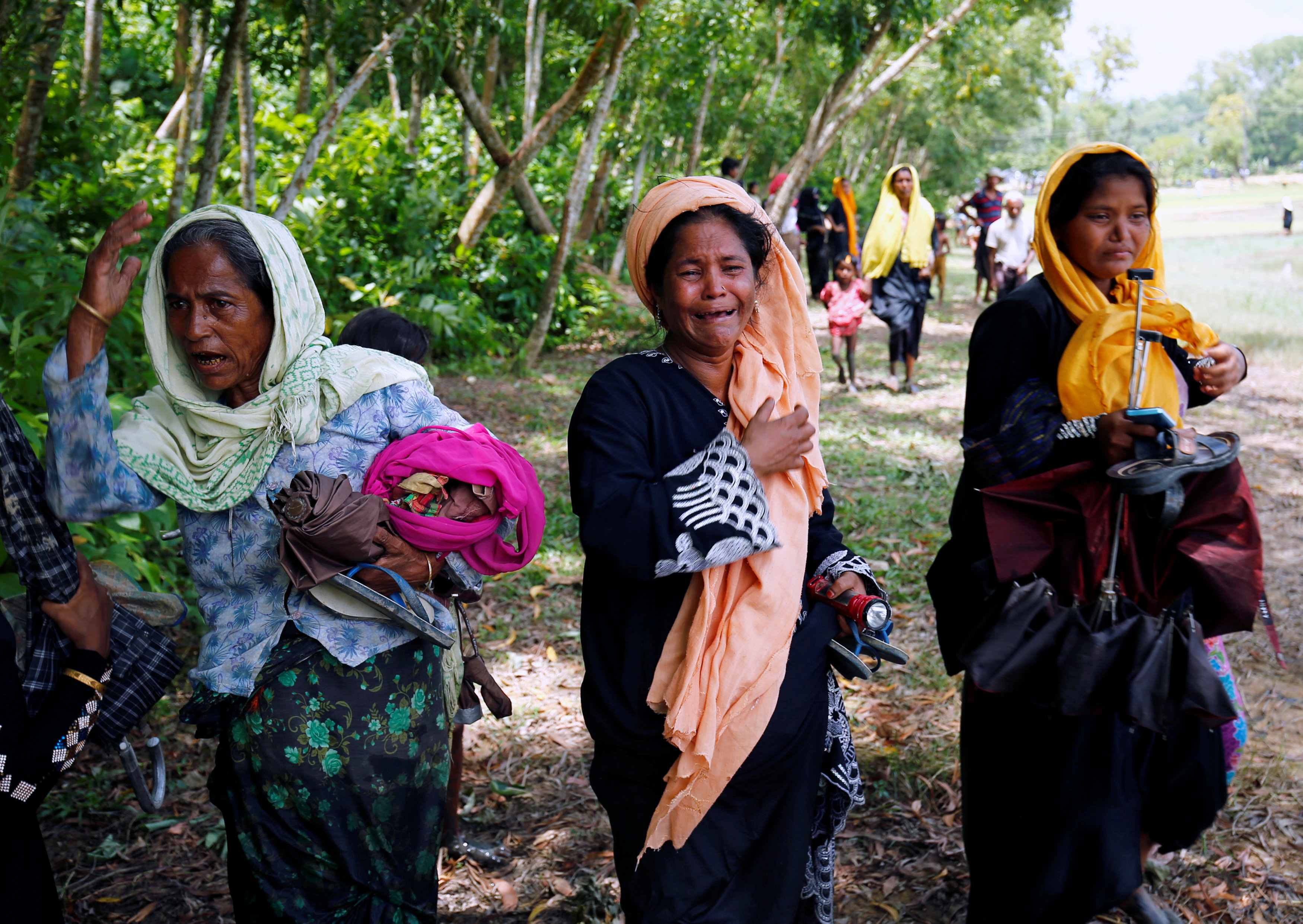 Rohingya women cry after being restricted by members of Border Guards Bangladesh (BGB) to further enter into Bangladesh, in Cox’s Bazar, Bangladesh August 28, 2017. REUTERS/Mohammad Ponir Hossain