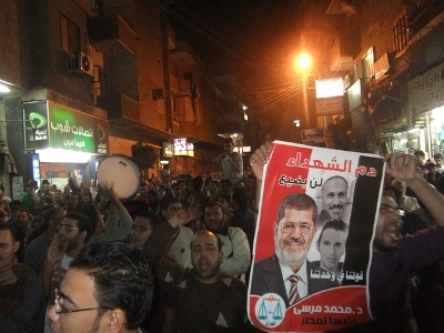 باتت محافظات مصر ليلة أمس (الخميس) تحتفل بالقرارات التي اتخذها الرئيس محمد مرسي ، والتي قضت بمنع حل الجمعية التأسيسية للدستور، ولا يمكن وقف تنفيذها أمام أي جهة قضائية، ويقضي بإعادة محاكمة الرئيس السابق حسني مبارك ورموز نظامه، بتهم قتل الثوار وإفساد الحياة السياسية.