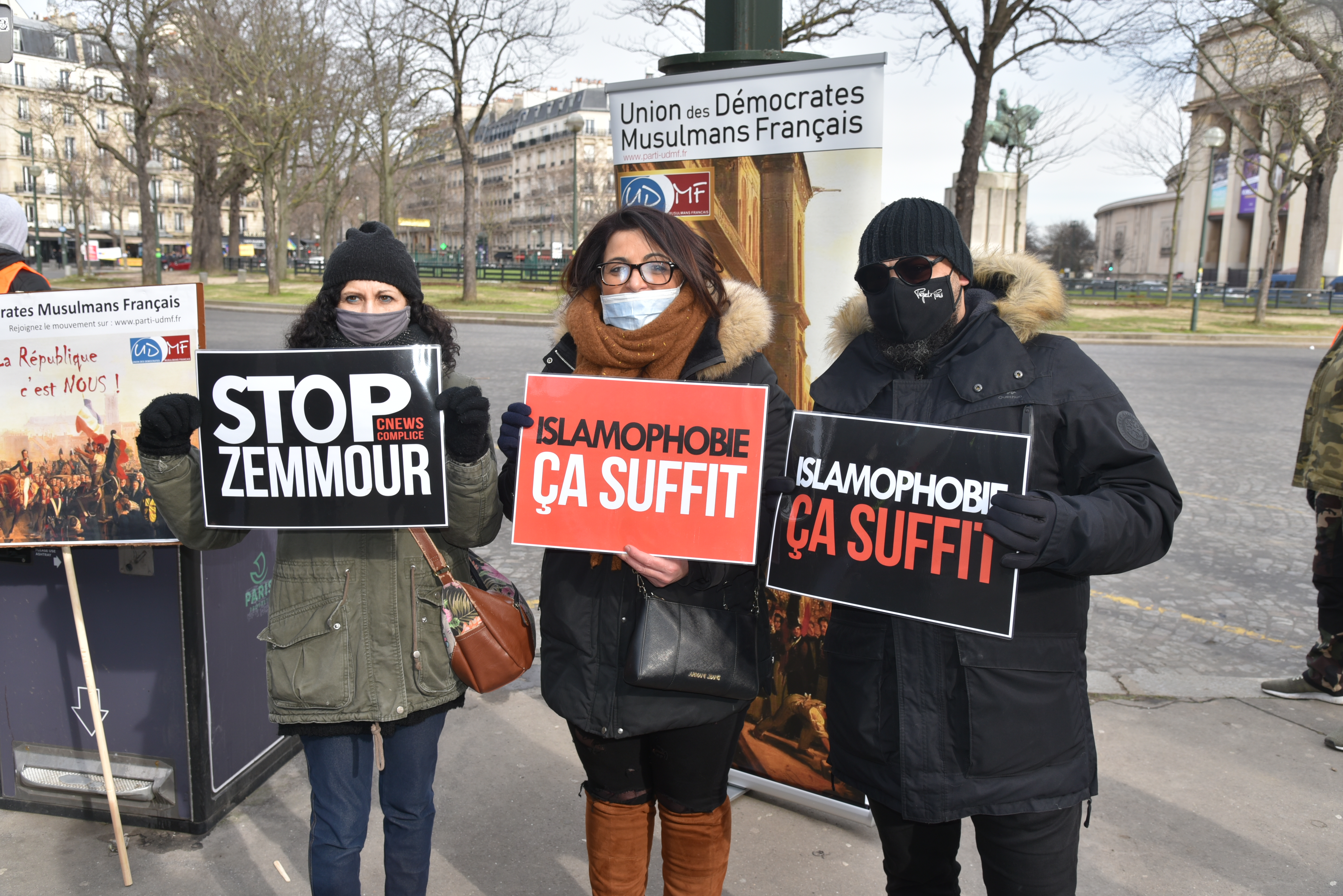 واحتشد المحتجون قرب ميدان «تروكاديرو»، معربين عن استيائهم من مشروع قانون «مبادئ تعزيز احترام قيم الجمهورية»، الذي يناقش في البرلمان، كونه «يؤدي إلى التمييز ضد المسلمين».
