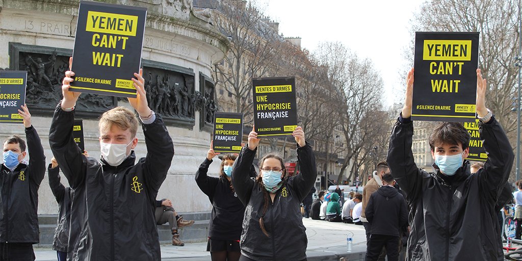 وخلال المظاهرة، دعت “أمنستي” السلطات الفرنسية إلى “حظر تصدير الأسلحة” إلى البلدين، على خلفية ارتكابهما “انتهاكات حقوق الإنسان في اليمن”.