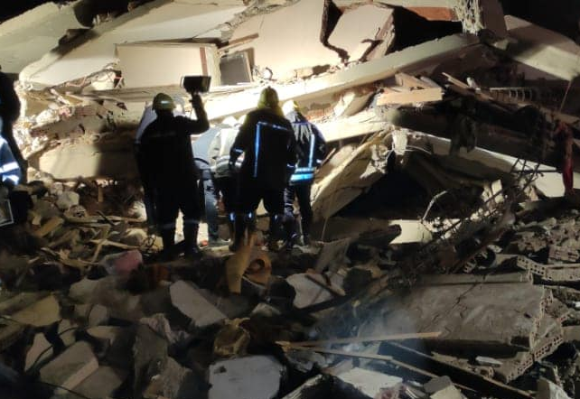 وأدى انهيار العقار المكون من 10 طوابق إلى احتجاز العديد من الأشخاص تحت الأنقاض، فيما تتسارع الجهود لانتشال جثث المتوفين والبحث على مصابين أحياء.