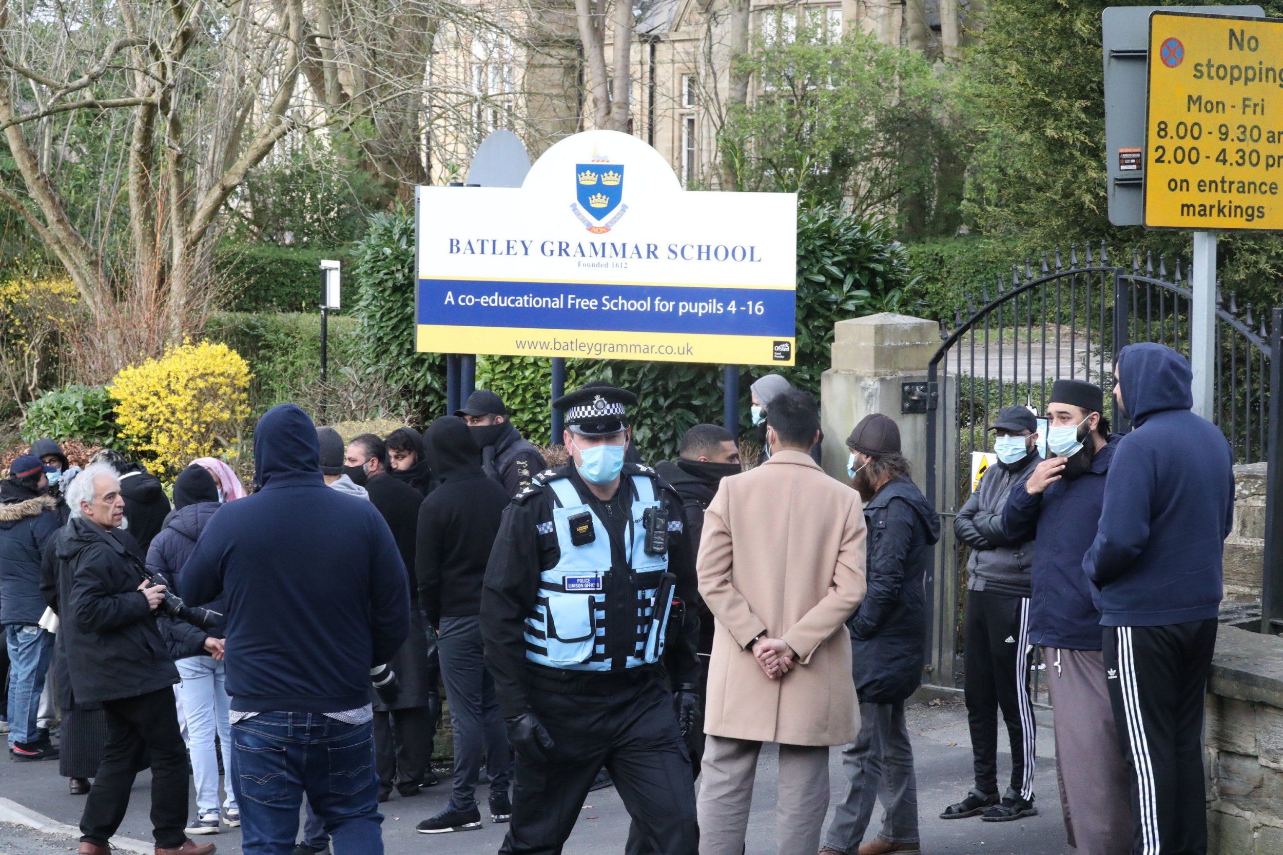 والآن أتحول إلى الأحداث في باتلي. ففي الثاني والعشرين من مارس، قام أستاذ الدراسات الدينية بعرض صورة من الرسوم المسيئة للنبي محمد أثناء الحديث عن التجديف «الكفر». يقال إن المدرس قام بعرض صورة من الرسومات التي نشرتها مجلة شارلي إيبدو الفرنسية، إلا أن الصورة نفسها لم يتم الكشف عنها للعامة – ولم تؤكد المدرسة ما إذا كانت تلك الرواية صحيحة أم لا.