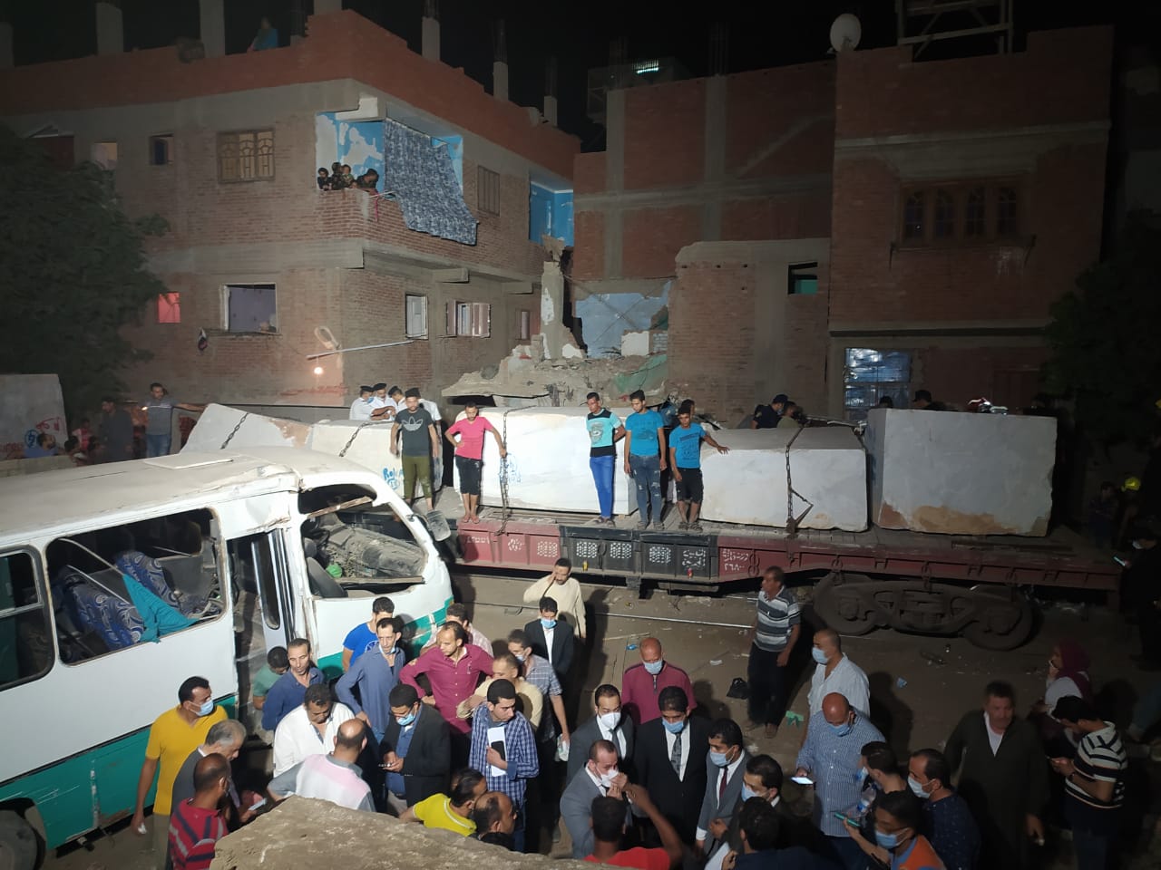 فيما ذكرت هيئة السكك الحديد، في بيان، أن قطار بضائع محمل بالرخام اصطدم، مساء الإثنين، بحافلتين صغيرتين في حلوان.