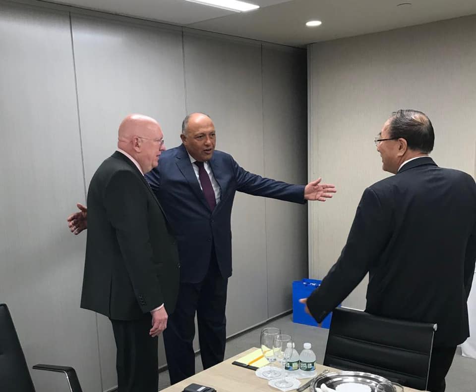 وأفادت الخارجية المصرية، في بيان، بأنه «في إطار التحضيرات المُكثفة لجلسة الخميس، التقى وزير الخارجية سامح شكري، الثلاثاء في نيويورك بالمندوبين الدائمين لروسيا والصين لدى الأمم المتحدة».