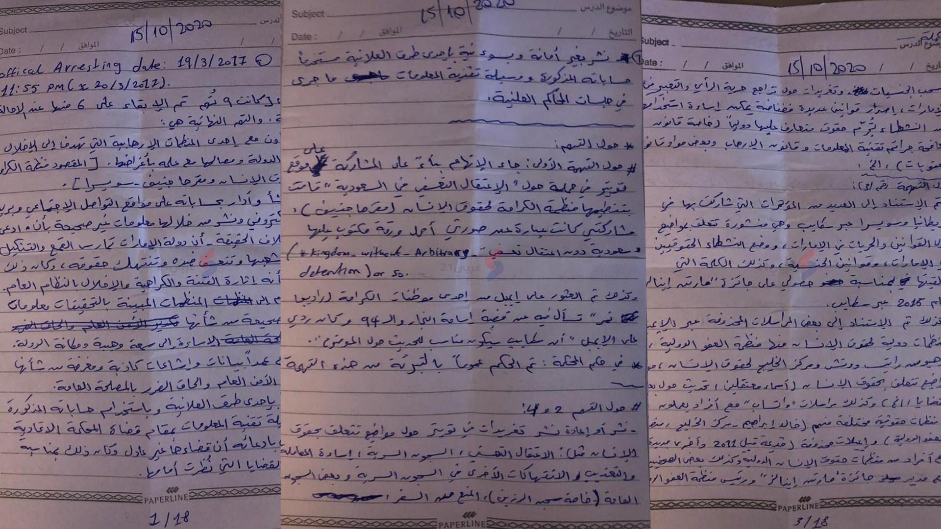 والرسائل المسربة تمكنت من الخروج إلى العالم الخارجي بعد أن كتبها الناشط الحقوقي الإماراتي المعتقل «أحمد منصور»، حيث يكشف فيها بأنه لا زال يقبع في سجن انفرادي منذ اعتقاله في مارس عام 2017 تحت مراقبة أمنية شديدة وفي ظل إجراءات سجنية صعبة منافية لكل قوانين حقوق الإنسان في العالم.