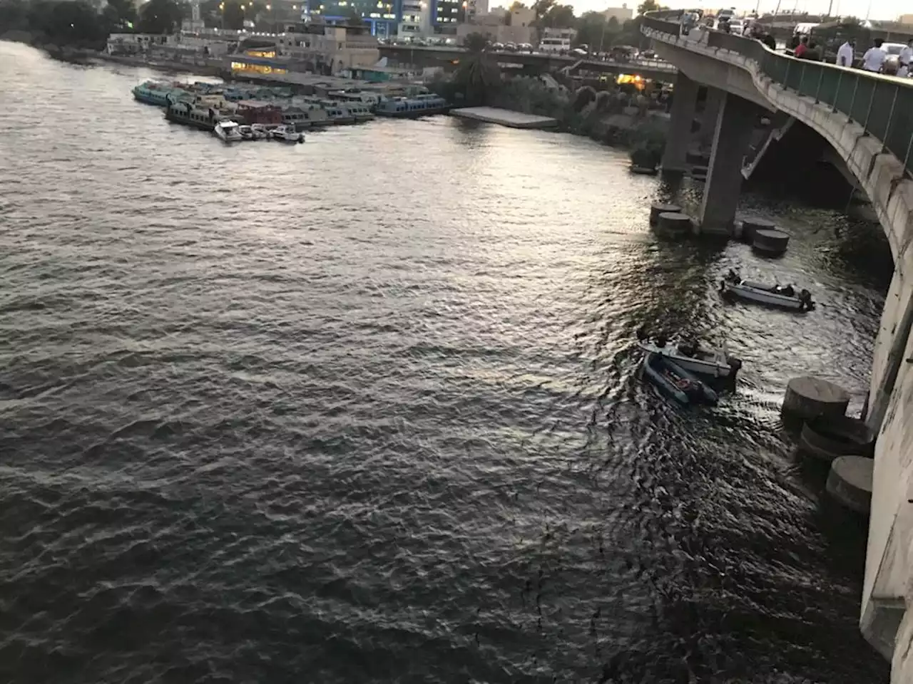 وتواصل فرق الإنقاذ النهري جهود البحث عن ضحايا حادث سقوط ميكروباص من أعلى جسر الساحل في حي إمبابة بمحافظة الجيزة.