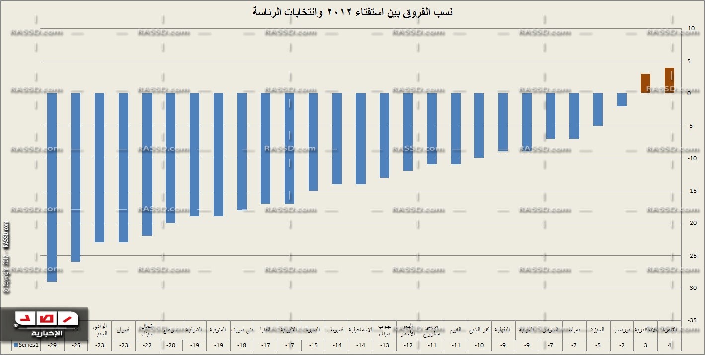 البحيرة في استفتاء 2011 كانت نسبة الرفض 12% ثم زادت في انتخابات الرئاسة إلى40% ثم تراجعت إلى 25% في استفتاء الدستور 2012 بزيادة 13% عن استفتاء 2011 وتراجع 15% عن انتخابات الرئاسة