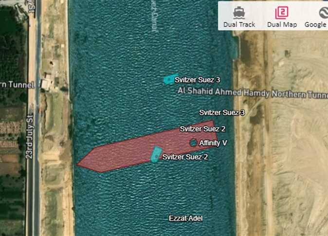 السفينة الجانحة هي ناقلة نفط تحمل اسم أفينيتي v وتحمل علم سنغافورة، طولها 252 مترا في قناة السويس، قريبا للغاية من نفق الشهيد أحمد حمدي.