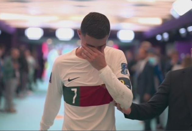 وبكى كريستيانو رونالدو لاعب منتخب البرتغال فور خروجه من الملعب بعد خسارة فريقه أمام منتخب المغرب