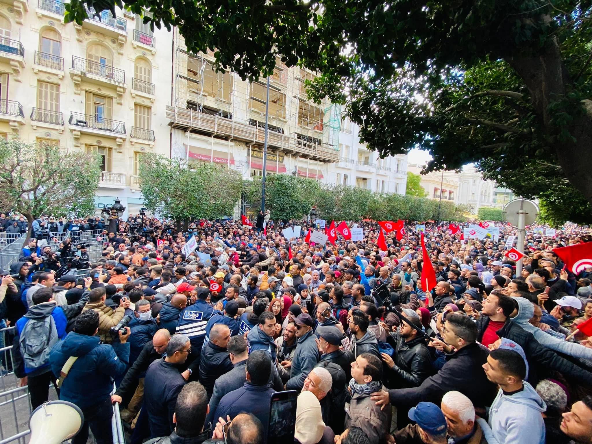 شارك الآلاف من المواطنين التونسيين في مظاهرات احتجاجية بالعاصمة تونس، للمطالبة بـرحيل الرئيس قيس سعيد، ودفاعا عن الحرية والديمقراطية.
