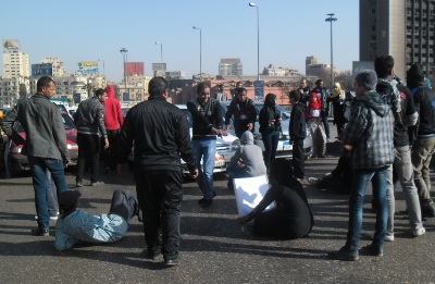 على الجانب الأخر اعتدى أحد المتظاهرين على سيدة ضمن المتظاهرات أعلى كوبري أكتوبر بسبب اعتراضها على إغلاق كوبري أكتوبر ، وتعطيل حركة المرور ، حيث قام بتوجيه السباب لها ودفعها ، الأمر الذي أدى لوقوعها أمام سيارة قادمة ، وقام المتظاهرون بالاعتداء عليه بالضرب المبرح وطرده من الوقفة.
