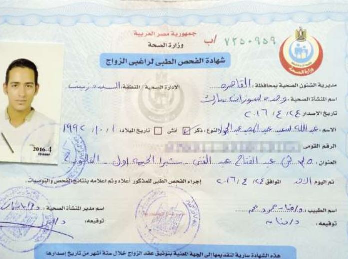 وأكدت وزارة الصحة والسكان أن مدة سريان الشهادة فحص المقبلين على الزواج 6 أشهر، من بدء إجراء الفحص الطبى، وتابعت وزارة الصحة والسكان: “عقوبة تزوير شهادات الفحص الطبى للمقبلين على الزواج مدة لا تقل عن 10 سنوات حبسا، وعقوبة استخدامها مدة لا تقل عن 3 سنوات”.