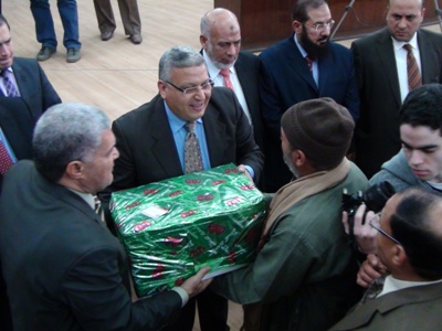 وقام المعداوى خلال الحفل بتوزيع الهدايا العينية على أسر 15 شهيداً من أبناء الدقهلية، وعدد 111 من مصابى الثورة.