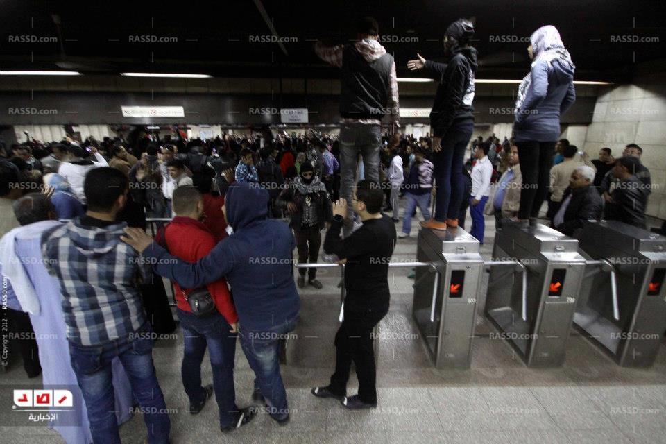 وفي سياق متصل ، اقتحم المئات من المتظاهرين محطة مترو السادات منذ قليل مرددين هتافات :" الشعب يريد إسقاط النظام "، و " بص شوف الثورة يا خروف "، و " القصاص القصاص قتلوا أخواتنا بالرصاص "، و " سامع أم شهيد بتنادي مين هيجيبلي حق أولادي "، و " ثورة ثورة حتى النصر ثورة في كل شوارع مصر "، و " يا نجيب حقهم يانموت زيهم " رافعين أعلام مصر .