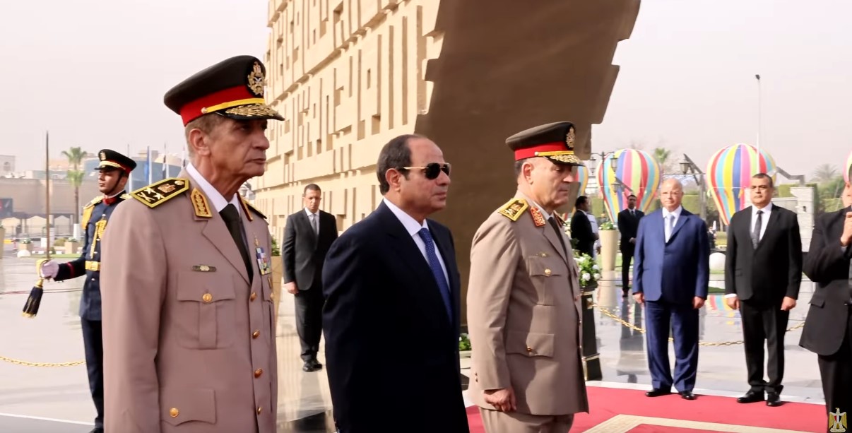 وقام السيسى يرافقه الفريق أول محمد زكى القائد العام للقوات المسلحة وزير الدفاع والإنتاج الحربى والفريق أسامة عسكر رئيس أركان حرب القوات المسلحة، بوضع إكليل من الزهور على النصب التذكارى لشهداء القوات المسلحة بمدينة نصر.