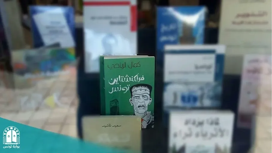واحتوى قسم دار “الكتاب” على مؤلف “فرانكشتاين تونس، تأملات في الشأن السياسي التونسي في عهد قيس سعيد” للروائي التونسي كمال الرياحي، الذي يحمل رسم كاريكاتور على صورة غلاف تشبه الرئيس التونسي.