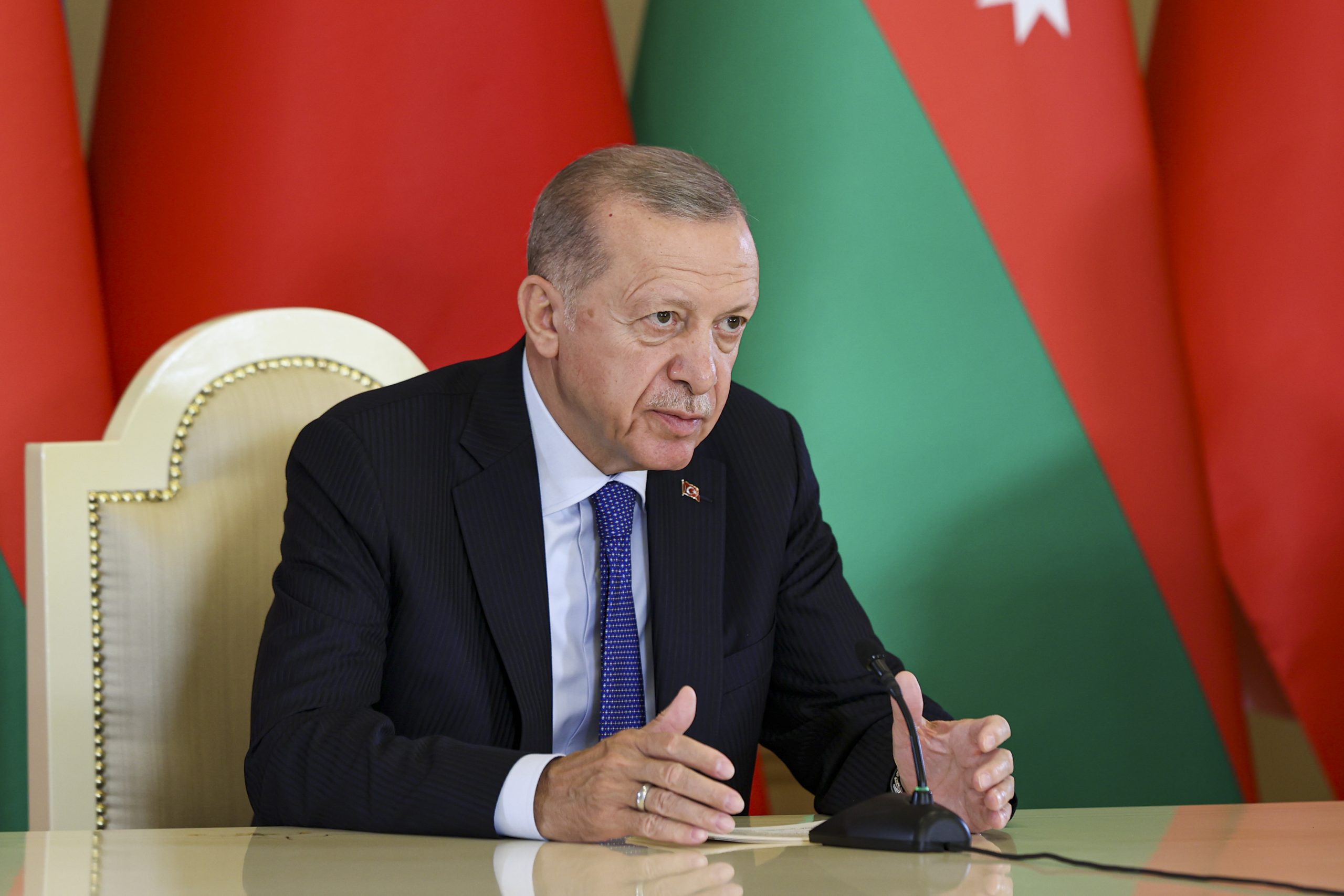 أكد الرئيس التركي رجب طيب أردوغان، أن الحل السريع لمسألة ممر زنغزور الواقع بين تركيا وأذربيجان مرورا بأرمينيا، سيعزز العلاقات بين أنقرة وباكو. جاء ذلك في مؤتمر صحفي مشترك عقده الرئيس التركي الثلاثاء مع نظيره الأذربيجاني إلهام علييف في العاصمة باكو. ( Muhammed Selim Korkutata - وكالة الأناضول )