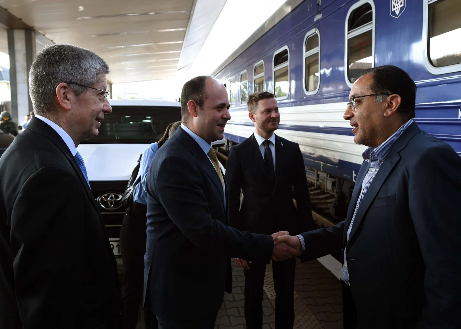 مدبولي وسامح شكري يصلان أوكرانيا بالقطار