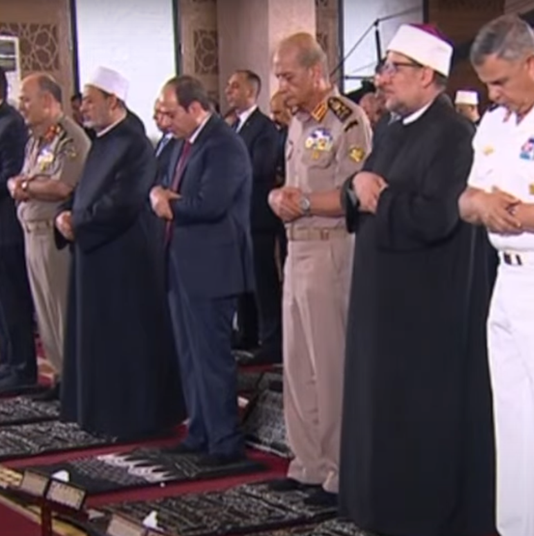 وصلى السيسي رفقة قيادات القوات المسلحة، احتفالا بمرور 10 سنوات على ذكرى 30 يونيو.