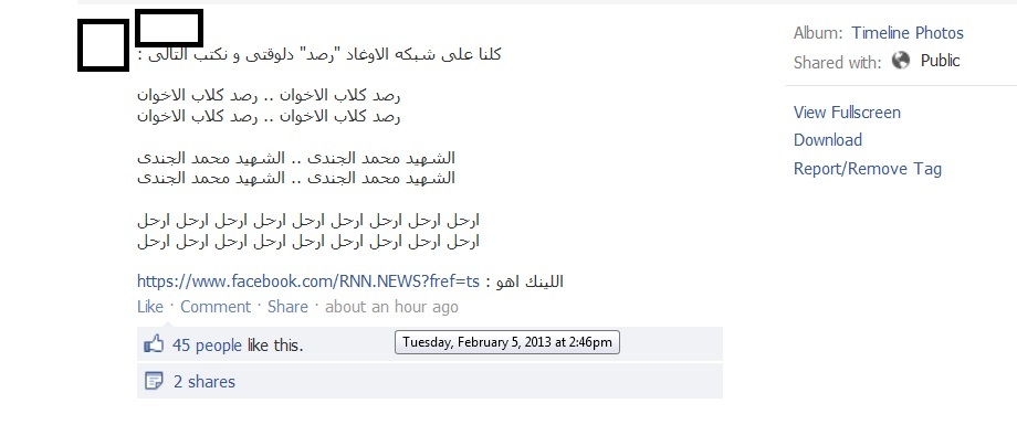 ويقوم مجموعة من مستخدمي موقع التواصل الاجتماعي "فيس بوك ،وتويتر" بعمل "حملة" إلكترونية علي صفحة " شبكة رصد الإخبارية" مستخدمين ألفاظ مشينة وكلمات نابية، مما دفع الصفحة لحذف تلك الألفاظ حفاظا علي مشاعر القراء والذوق العام التي تلتزم بها شبكة رصد الإخبارية.