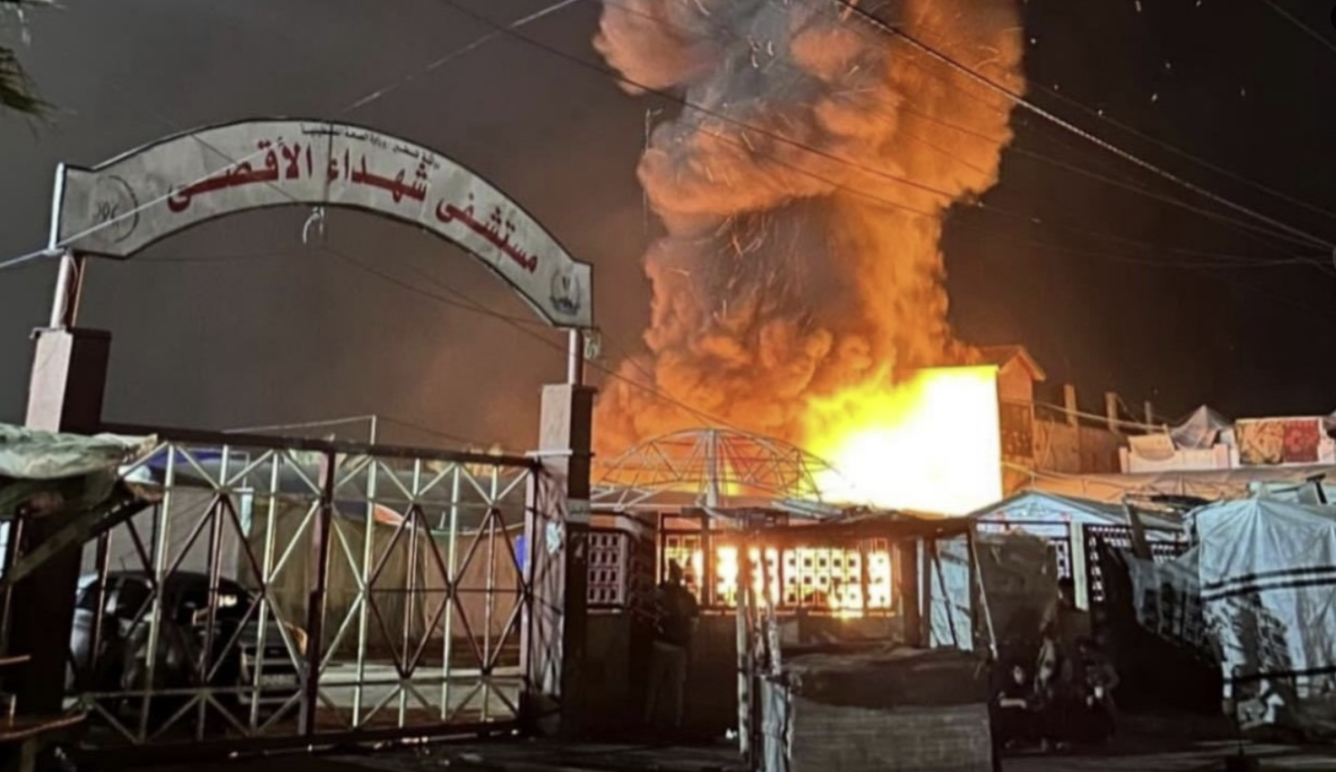 وأعلن المتحدث باسم جيش الاحتلال أفيخاي أدرعي، أن طائرات حربية لسلاح الجو أغارت على مستشفى شهداء الأقصى بدير البلح، بزعم وجود عناصر لحماس داخل المستشفى.