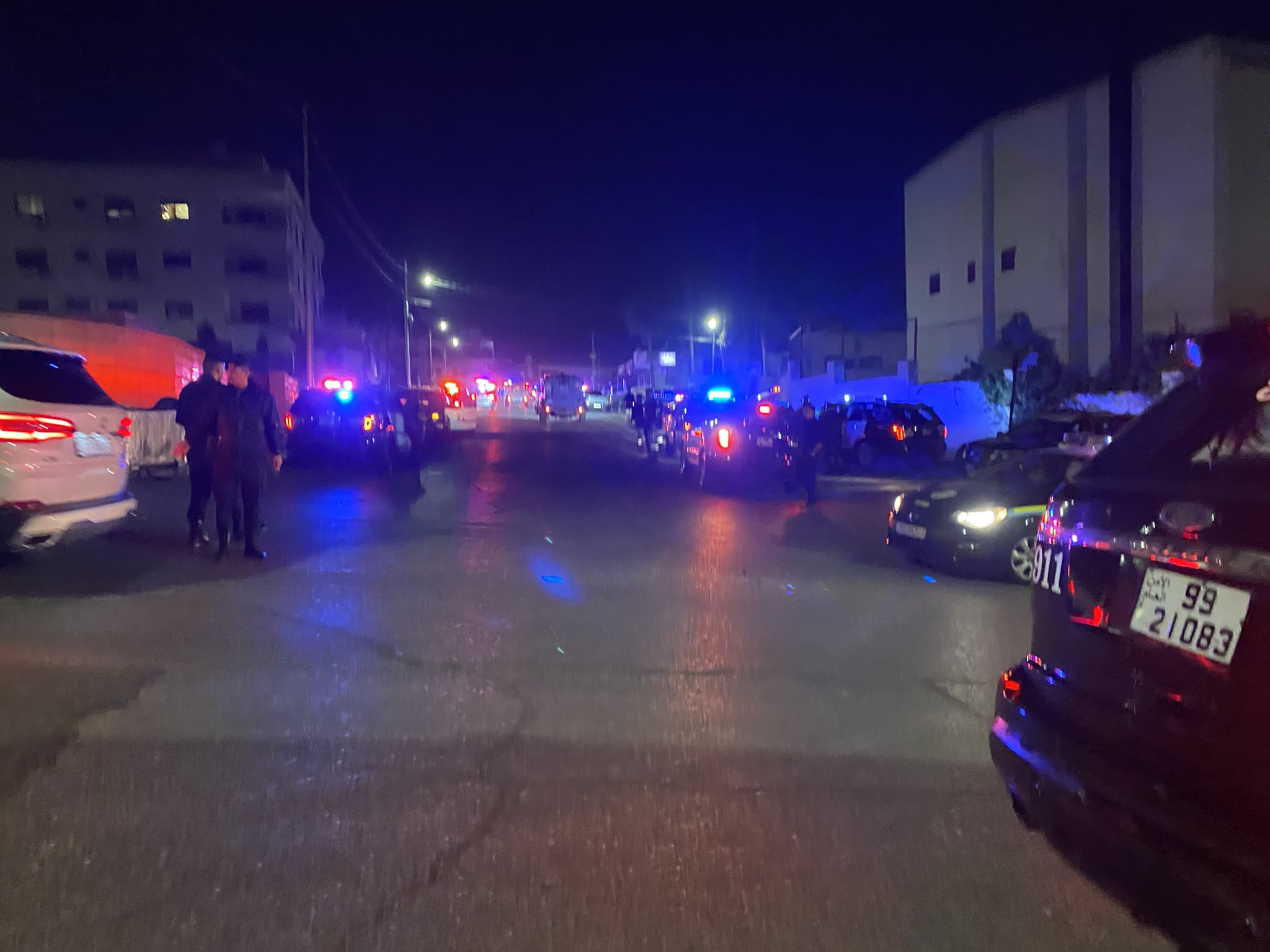 وقامت قوات الأمن بإغلاق الطرق المؤدية للسفارة في عمان، وسط تواجد أمني مكثف وسيارات إسعاف، مع استمرار سماع أصوات الرصاص في محيط السفارة.