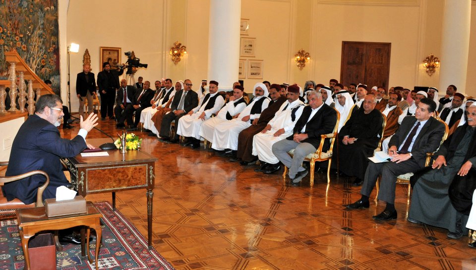 وعد الرئيس محمد مرسي ممثلي القبائل العربية، من مختلف محافظات مصر، الذي التقى بهم أمس (الثلاثاء) بمقر رئاسة الجمهورية بالنظر إلي طلباتهم بأسرع وقتٍ وإعطائها الاهتمام اللازم.