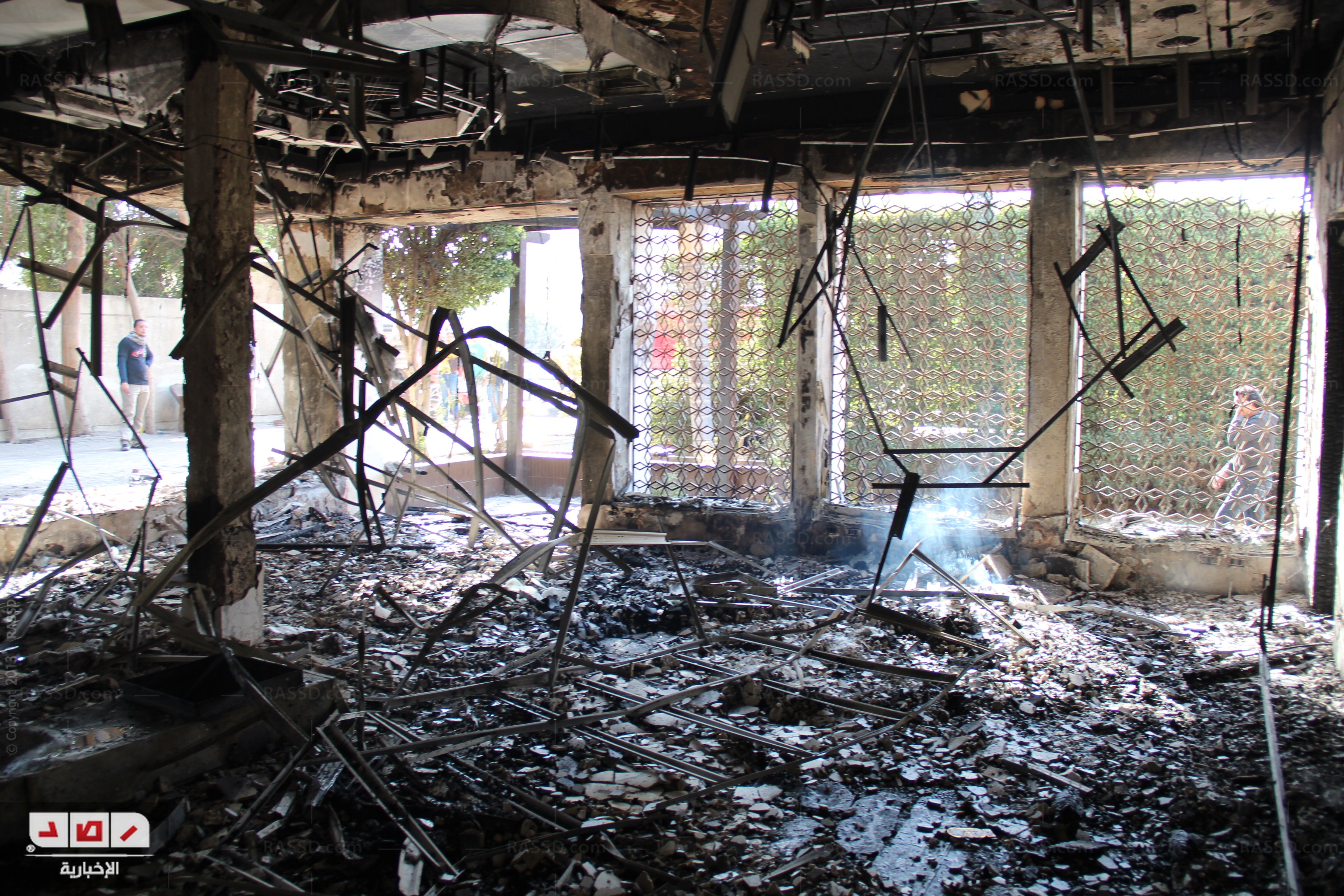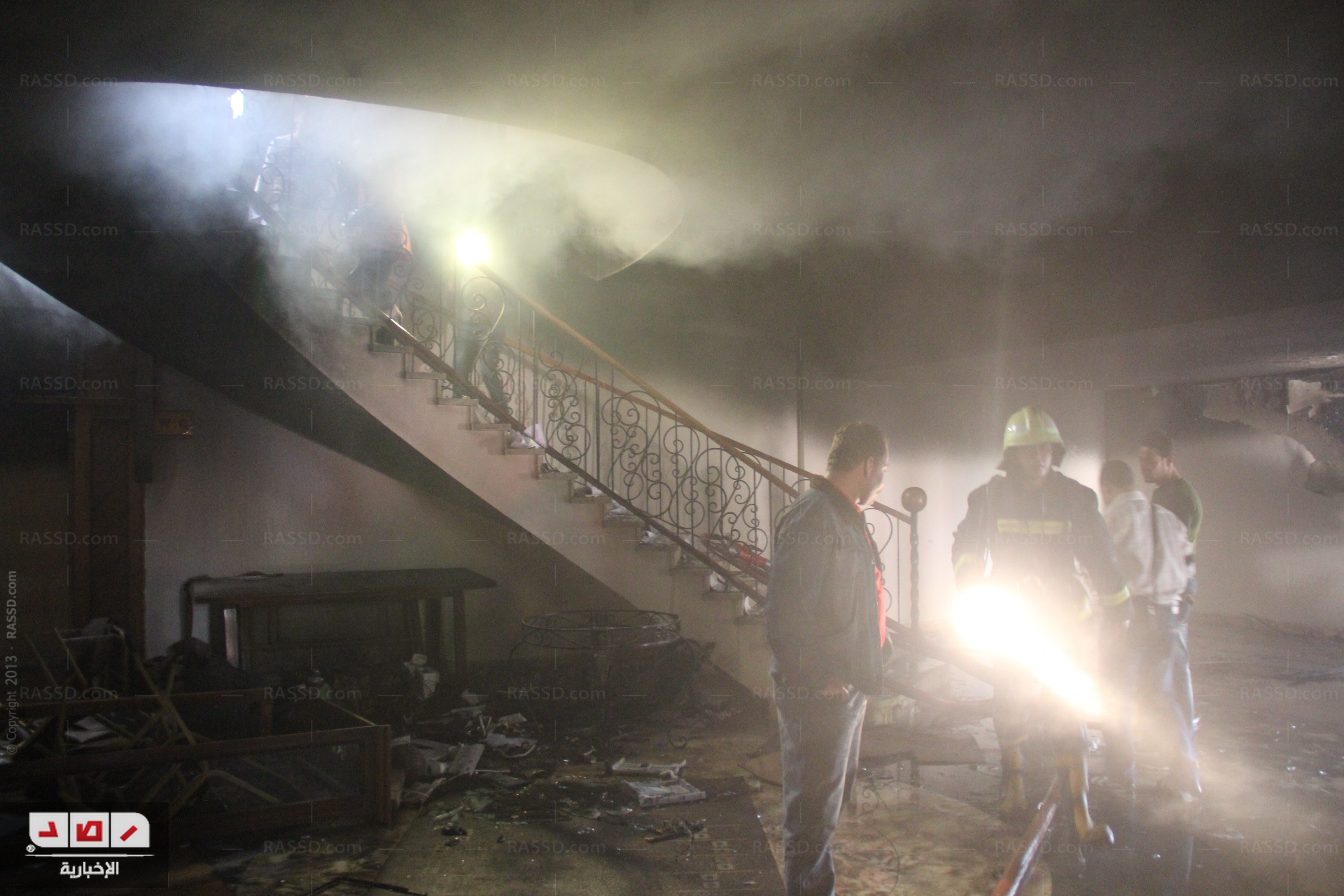 وقام بعض العاملين بالاتحاد باستخدام خراطيم مياه بدائية في محاولة لإطفاء الحريق لحين قدوم عربات المطافيء.