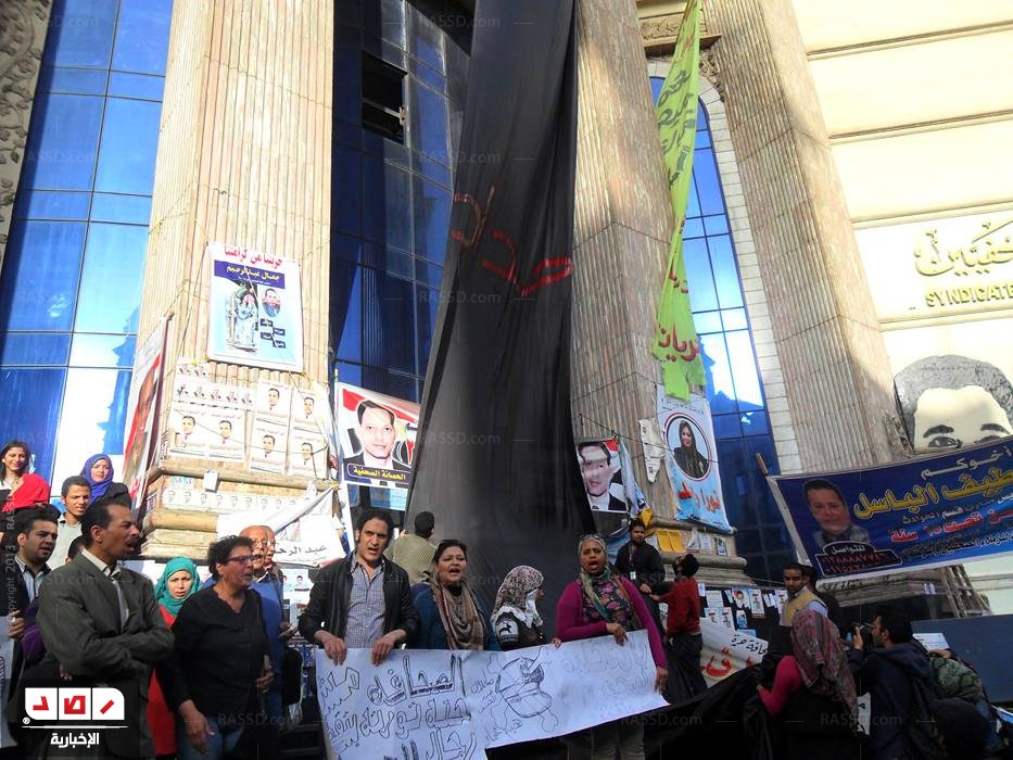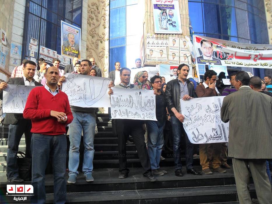 نظم العشرات من الصحفيين من الصحف الحكومية والمستقلة والخاصة وقفة احتجاجية عصر اليوم أمام نقابة الصحفيين للتنديد بممارسات وزارة الداخلية تجاه الصحفيين والاعتداء عليهم وسحلهم أثناء تغطيتهم للأحداث خصوصا الاشتباكات، مطالبين بوقف تلك الممارسات وأن تكون للنقابة دور للوقوف مع أصحاب الأقلام الحرة.