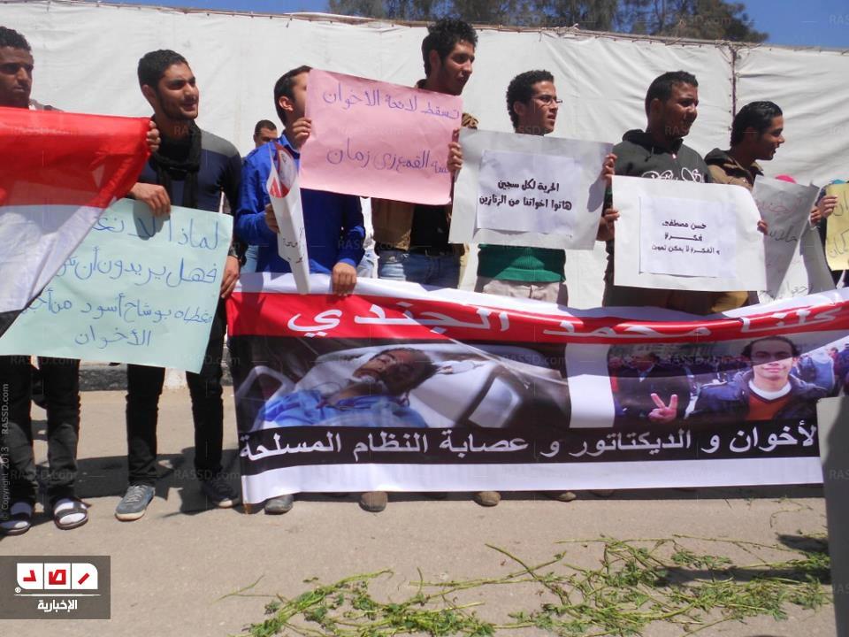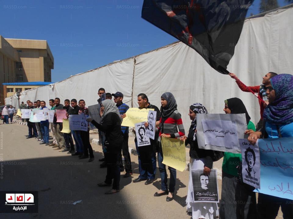 أقام اليوم (السبت) شباب التيار الشعبي بمجمع الكليات النظرية بجامعة دمنهور وقفه لاعتراض على اللائحة الطلابية ، التي وصفوها باللائحة الإخوانية. وتعالت هتافات المشاركين، التي أظهرت اعتراضهم على النظام السياسي القائم، وعلى الرئيس مرسي، مطالبة بإسقاط النظام .