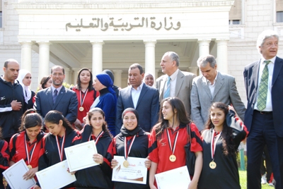 وقام الوزير بتكريم الطالبات الفائزات ببطولة أفريقيا وعددهن 22 طالبة ، كما كرم الطالب أحمد شريف عادل بطل مصر في رمي القرص، واثنين من الطلاب المخترعين هما محمد شعبان السيد ، وأدهم أحمد سعيد .