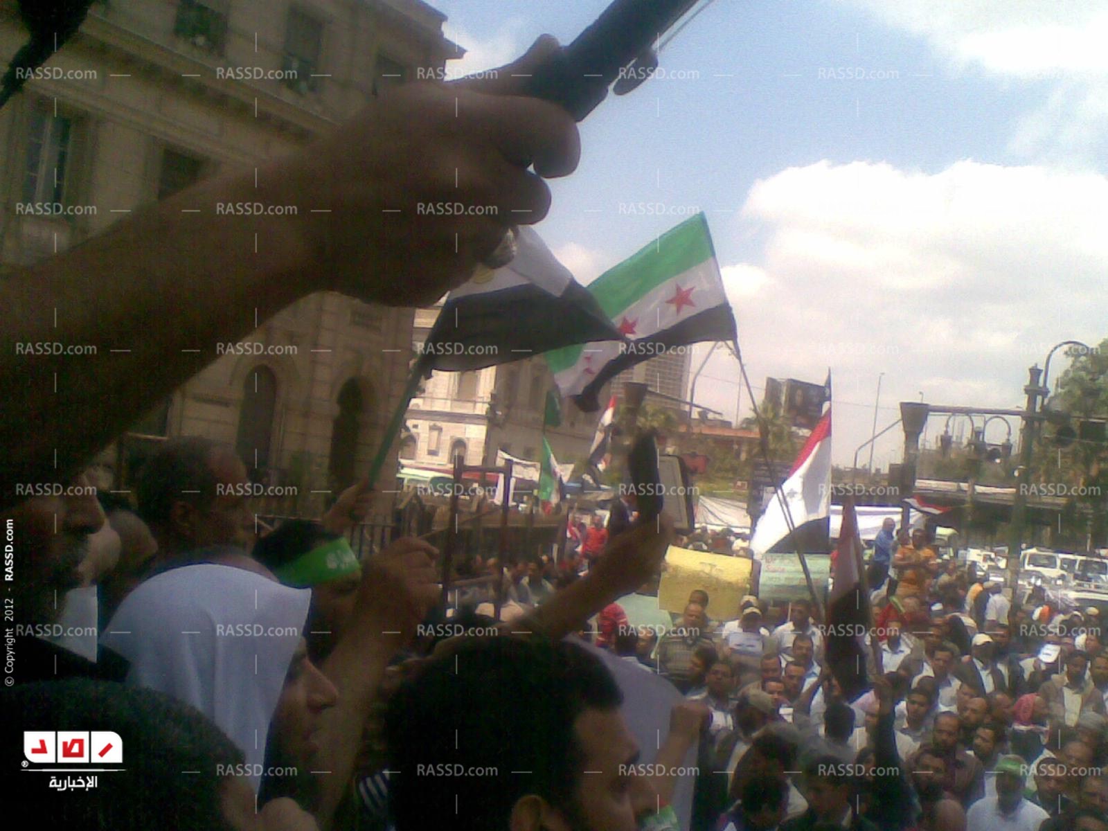 كما توافد العديد من شباب الاخوان يحملون الدفوف وينشدون الأناشيد الحماسية، كما ارتفع علم سوريا وترددت هتافات تضامنا مع الثورة السورية .