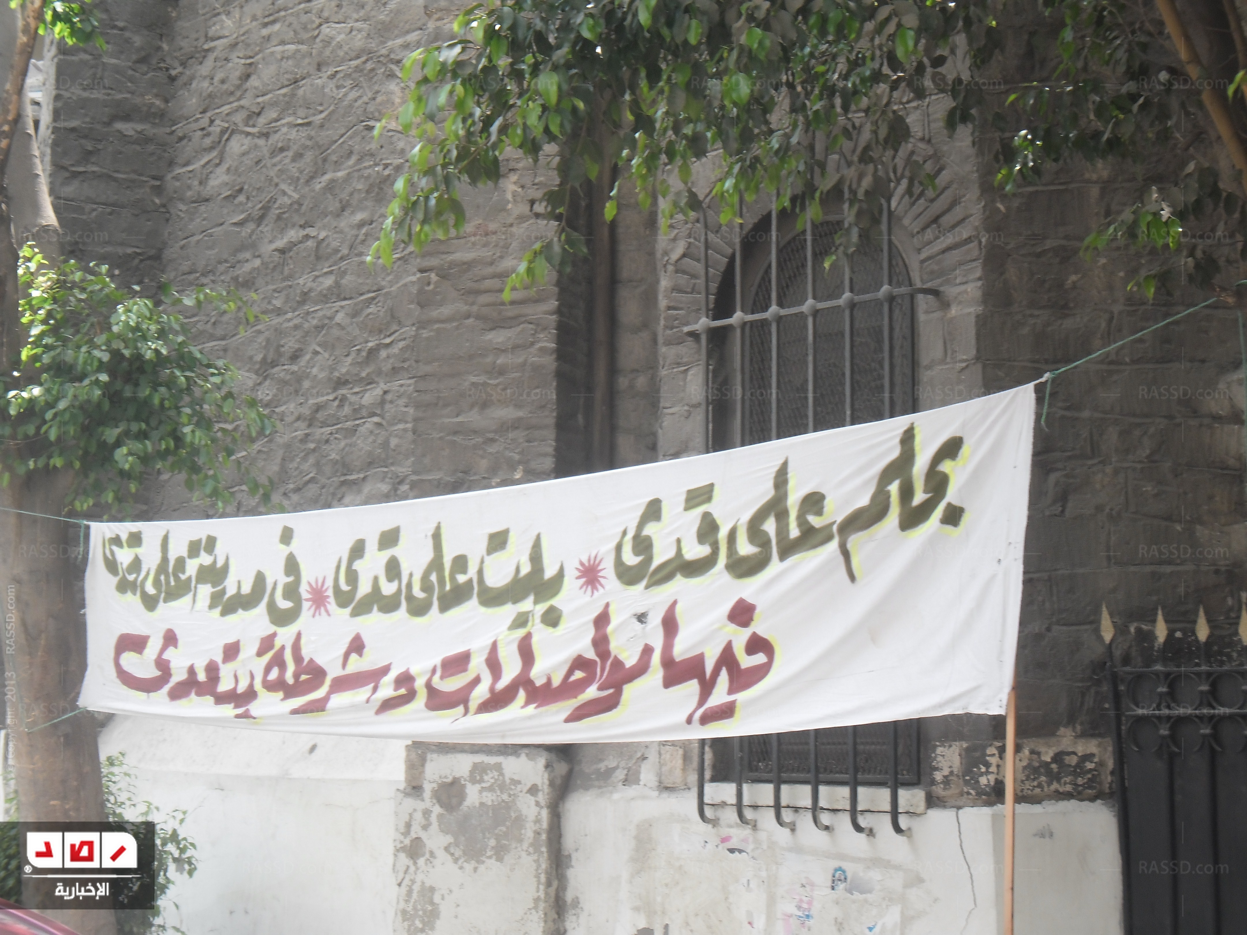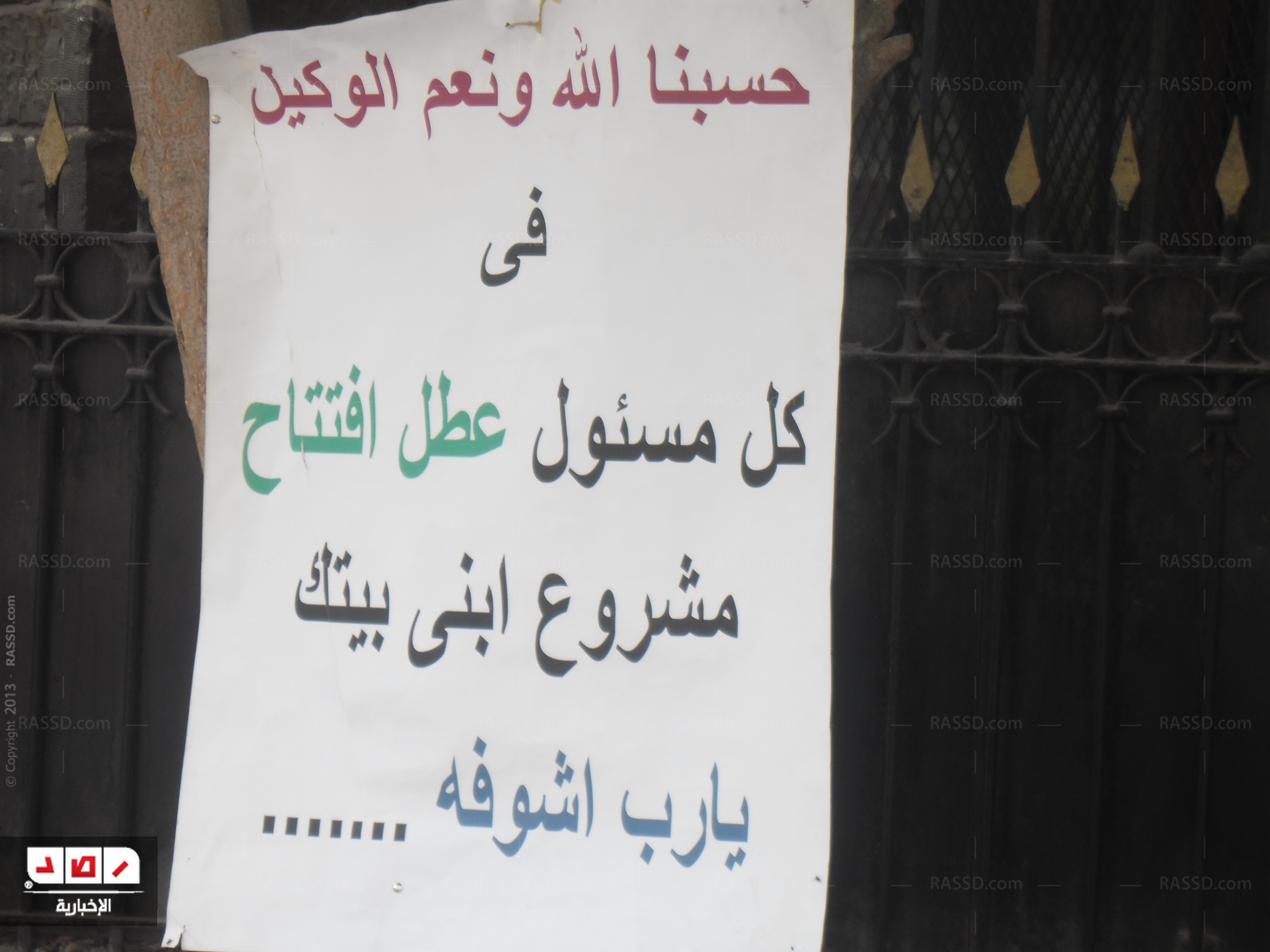 وقام المعتصمون بنصب خيمة واحدة في مكان الاعتصام مكتوب عليها منكوبى ابني بيتك.