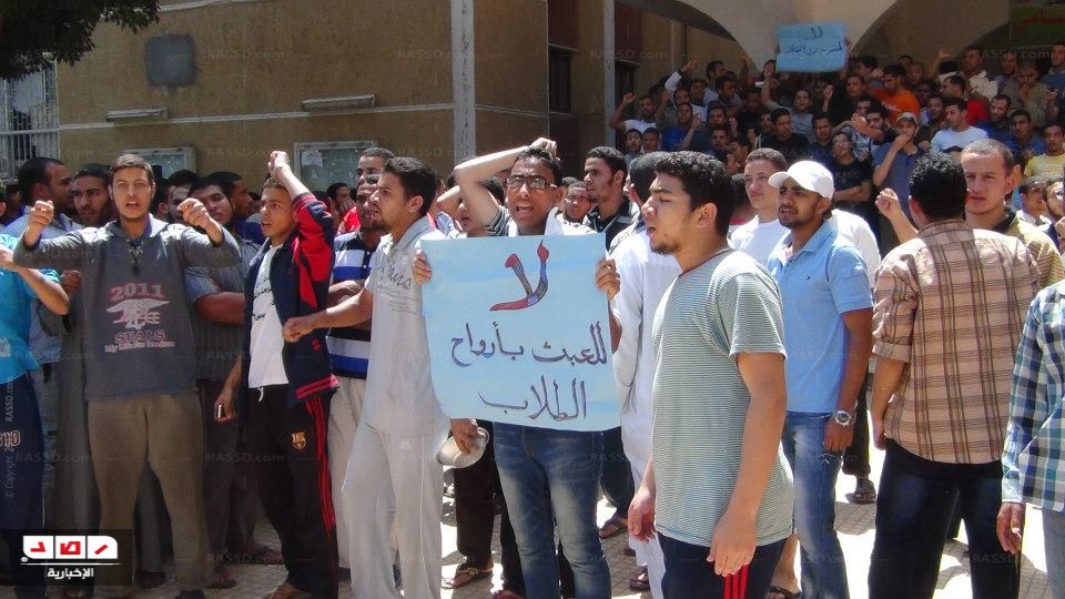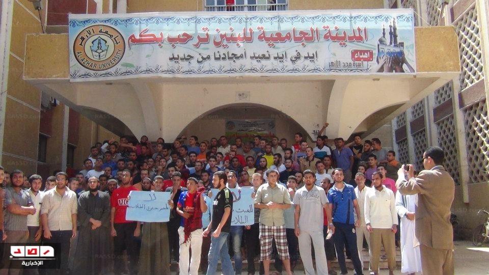 تظاهر المئات من طلاب الأزهر داخل  المدينة الجامعية بأسيوط بمنطقة الشيخوة "احتجاجا علي سوء التغذية وتسمم ثلاثة من زملائهم بسبب أكل التونة وتردي الحالة داخل المدينة.