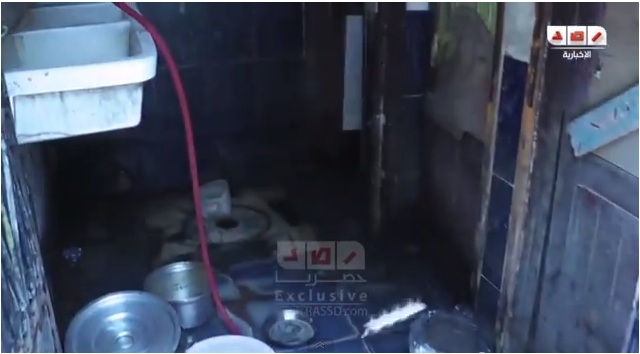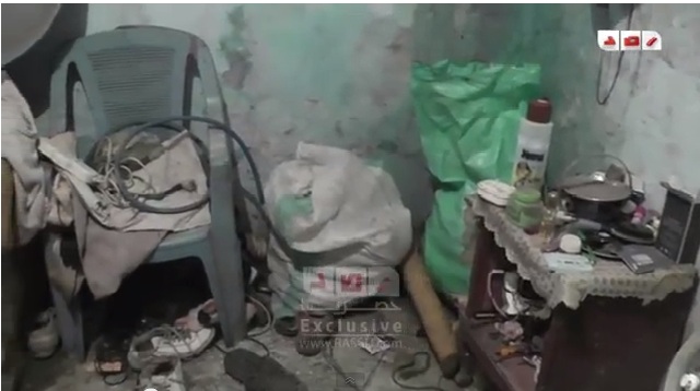 ولم نكن نصدق في بادئ الأمر إن هناك أي شخص يمكن أن يتخذ من المخابئ التي لا ترى الشمس ولا الحياة من الأساس بيتا له ، فأخذنا الأهالي إلى هذه المخابئ لنرى بأعيننا المأساة فهبطنا معهم تحت الأرض و كانت المفاجأة بالنسبة لنا عندما وجدنا الأمر حقيقي فوجدنا مياه الصرف الصحي تتساقط  داخل الغرف من خلال أسقفها المشروخة و الملابس المتهرئة منشورة تحت الأرض على حبل غسيل مثبت على إحدى الحوائط بالمسامير و الأغرب إننا لم نجد ابسط الحاجات الإنسانية، عفوا لم نجد  حمامات في هذه الغرف فللأسف الأهالي يقضون حاجتهم في الخلاء !
