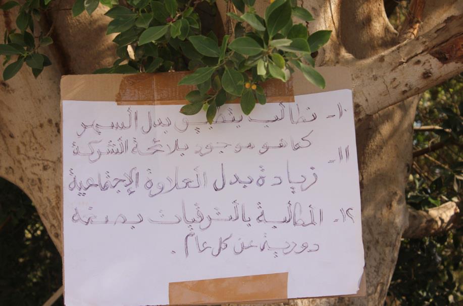 واستنكر أحد المعتصمين قيام نقابتهم بتنظيم رحلة إلى مقام " ابا الحسن الشاذلي " محاولة منها لتخفيض أعداد المعتصمين، وأدعى آخر ان رئيس مجلس الإدارة ينحاز دائماً لأبناء محافظته سوهاج على حساب أبناء محافظة قنا.