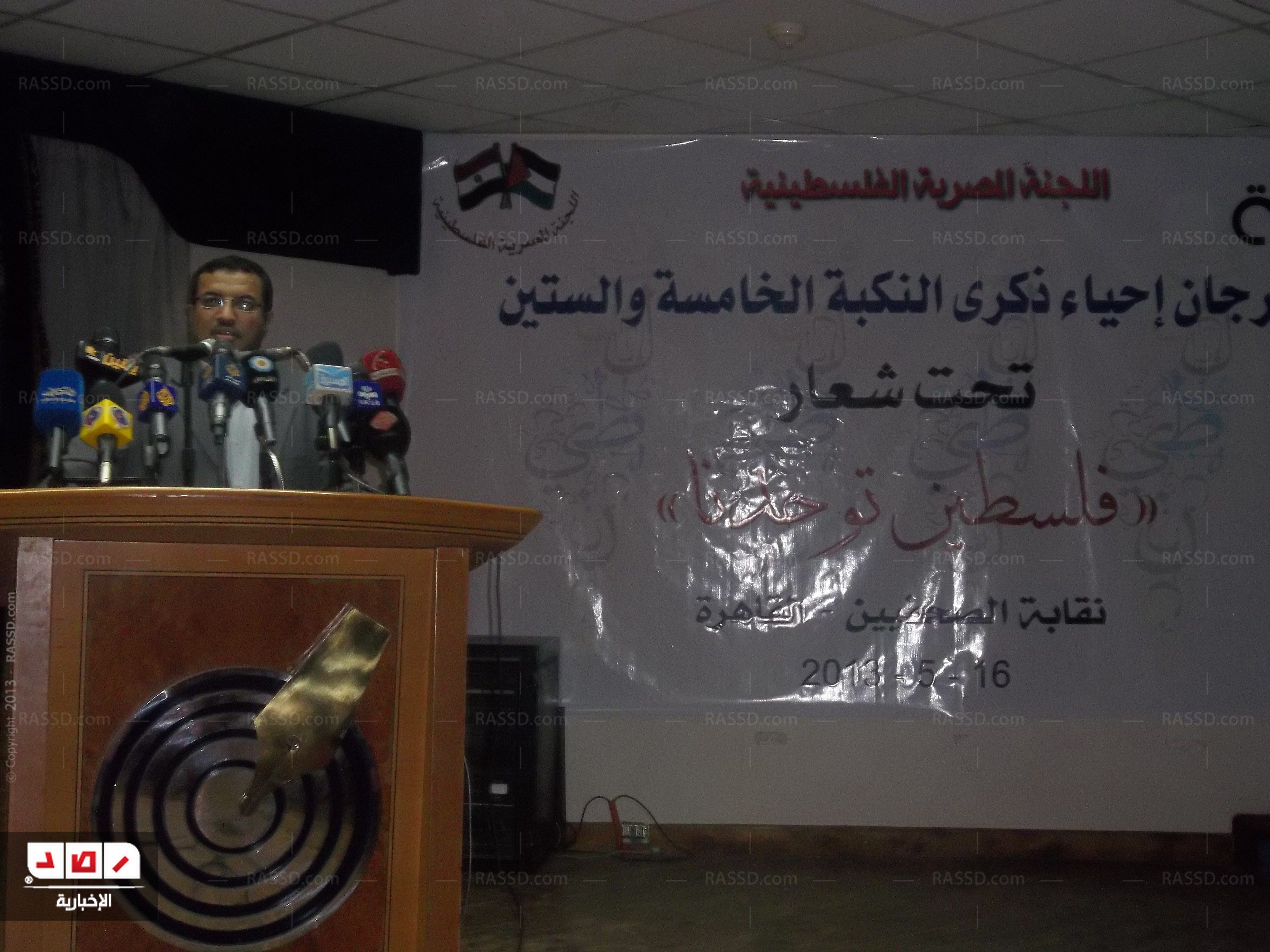 جاء ذلك خلال كلمته بمؤتمر "فلسطين توحدنا" الذي عقدته اللجنة المصرية الفلسطينية في نقابة الصحفيين بالقاهرة مساء أمس الخميس من أجل إحياء الذكرى الـ65 للنكبة التنسيق مع مؤسسة القدس الدولية و الحملة العالمية للعودة إلى فلسطين و حركة فتح بالقاهرة و مركز الوعي العربي و مركز باحث للدراسات و الائتلاف العالمي لنصرة القدس و فلسطين و اللجنة العربية للتحرير و العودة و نقابة الصحفيين المصرية .