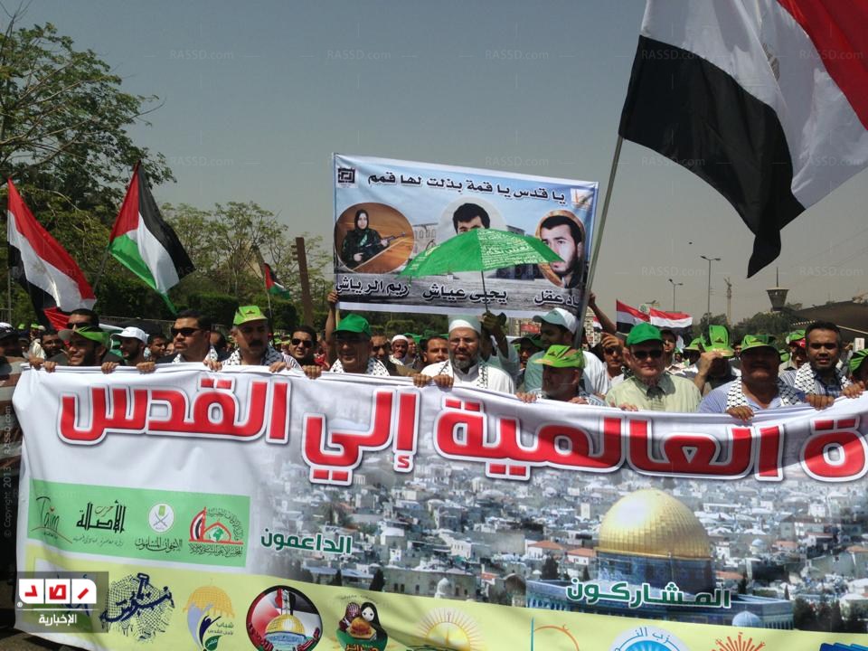 أتي ذلك بعد أنتهاء خطبة الجمعة التي ألقاها الدكتور صلاح سلطان في مسجد رابعة العدوية بحضور رئيس مجلس الوزراء الدكتور هشام قنديل ، وأنطلقت بعدها مسيرة بعنوان" القدس لنا" للمشاركة في المسيرة العالمية نحو القدس وأتجهت للنصب التذكاري للجندي المجهول بمشاركة وزير الثقافة و وزير الرياضة العامري فاروق،  وعبد الرحمن البر، عضو مكتب إرشاد جماعة الإخوان المسلمين وعميد كلية أصول الدين، والمئات من المتظاهرين .