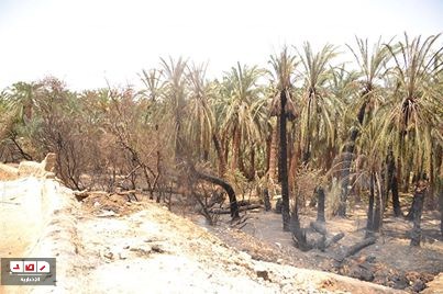 النيران تلتهم عشرة أفدنة و1000 شجره نخيل بالوادي الجديد