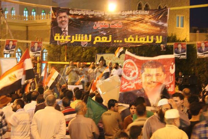 توافد المئات من القوى السياسية والإسلامية والوطنية ورموز قبائل سيناء وجماهيرها أمام مسجد أبو بكر الصديق بالفواخيرية بمدينة العريش داعمين لشرعية الرئيس تحت عنوان لا للعنف و نعم للشرعية .. ومؤكدين على سلمية تظاهراتهم وأرسلوا رسالة إلى رئاسة الجمهورية مفادها "أن سيناء ببدوها وحضرها .. ونسائها ورجالها مع شرعية النظام ومع إرادة شعب مصر العظيم"