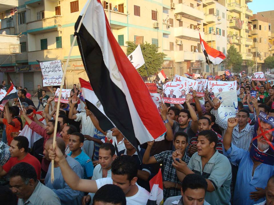 وردد المتظاهرون هتافات "يسقط يسقط حكم المرشد"، و" الشعب يريد اسقاط النظام" و"انزل متخفشي مرسي لازم يمشي"