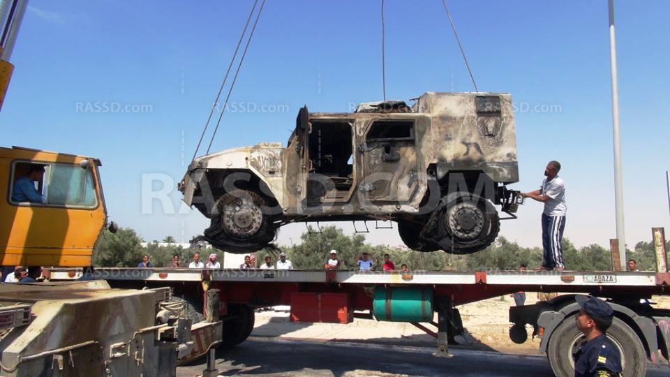 أحرقت مجموعة من الأهالي الغاضبين بالعريش ظهر اليوم(الجمعة) مدرعة الشرطة التي تعرضت للقصف فجر اليوم الجمعة احتجاجا على الانفلات الأمني الذي تشهده سيناء.