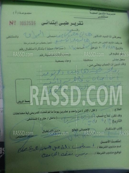 بينما لم نتمكن من الحصول علي تقرير وفاة الفتاة الرابعة التي أعلن عنها د. أحمد عارف-المتحدث الرسمي باسم الإخوان- والتى تبلغ من العمر 13 عام.