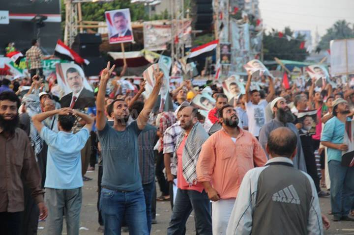 يذكر أن مؤيدو الشرعية ورافضو الانقلاب العسكري يواصلون اعتصامهم منذ أكثر من ثلاثة أسابيع تنديدًا بالانقلاب وعزل الرئيس المنتخب محمد مرسي ، كما تحلق بين حين وآخرى طائرات الهيلكوبتر فوق رؤسهم وخاصة أوقات الاحتشاد في المليونيات.