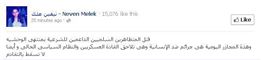 وأضافت ملاك على صفحتها الشخصية على موقع التواصل الاجتماعي " فيس بوك" اليوم السبت: " أن هذه المجازر ستلاحق القادة العسكريين و النظام السياسي الحالى، مشيرة أن هذه الجرائم لا تسقط بالتقادم.