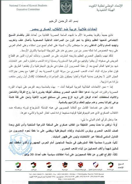 اتحادات طلابية عربية ضد الانقلاب العسكري بمصر.