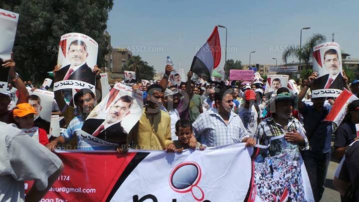وجاب المتظاهرون المشاركون في المسيرات شوارع القاهرة والجيزة، حاملين لافتات تندد بالانقلاب العسكري، وتطالب بعودة الرئيس محمد مرسي إلى منصبه.