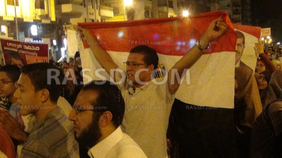 وحمل المتظاهرون صور الرئيس الشرعي محمد مرسي وصور شهداء المنصورة، كما هتفوا ضد حكم العسكر.