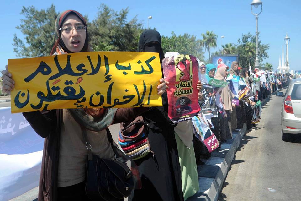تحت شعار " سيدات الثغر ضد الانقلاب " ، نظم الائتلاف الوطنى لدعم الشرعية ظهر اليوم السبت،  مسيرة نسائية حاشدة وسلاسل بشرية على كورنيش البحر،  وذلك لرفض الانقلاب العسكرى وتهديدات وزراة الداخلية بفض الاعتصامات السلمية بميدانى رابعة العدوية والنهضة.