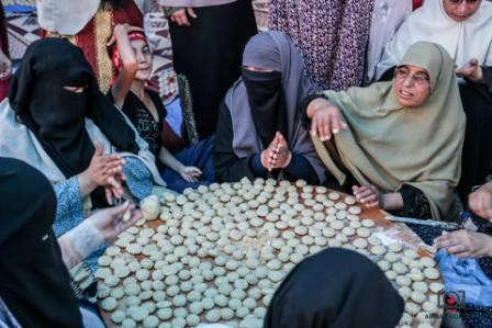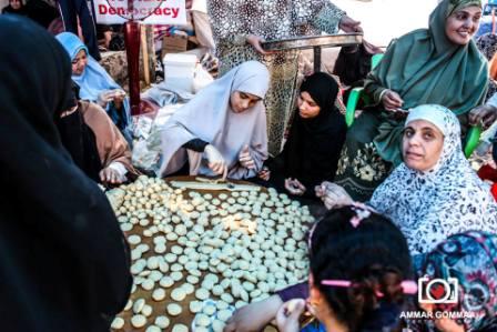 أراد المنظمون أن يظهروا فرحة العيد رغم سقوط الشهداء على أيدي الانقلابين، وأن تكون المقاومة مغلفة بالفرحة والإصرار على الاستمرار ، ويشارك بعض الرجال في نقل مستلزمات صناعة الكعك ، أما النساء ، والأطفال فهم أبطال العمل !.